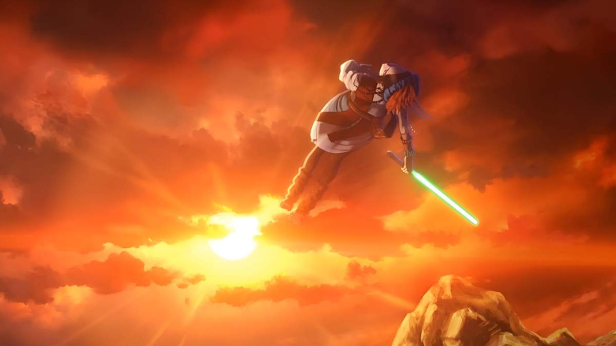 Polygon Pictures’ The Bird of Paradise marks one of the anthology’s most radiant episode. Known for their darker, more somber projects, the studio opts for a luminous and heartfelt story this time. It follows a warrior blinded in battle who undergoes a spiritual pilgrimage to resist the Dark Side. The colors—rich, sun-drenched hues contrasted with serene blues—evoke Studio Ghibli’s tranquility more than Star Wars’ typical grit.